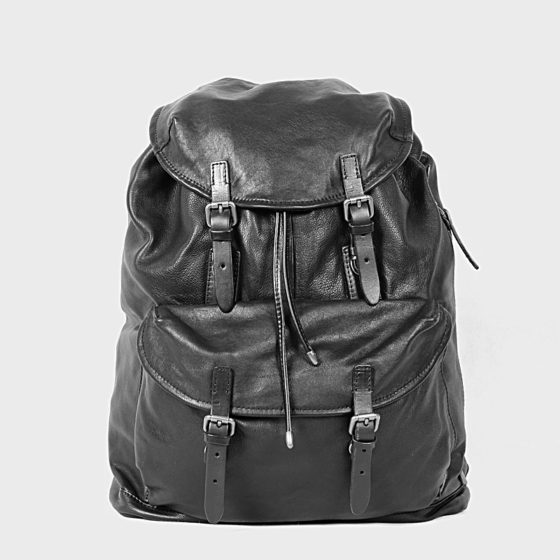 New casual top layer cowhide men's backpack large capacity black soft genuine leather shoulder bag