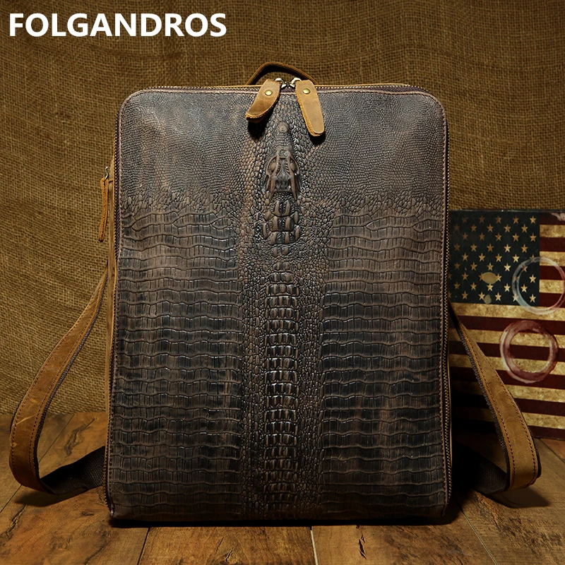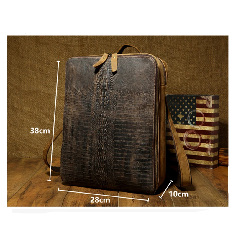 2019 Men Cowhide Handmade Backpack Vintage Genuine Leather Alligator Messenger Shoulder Bag Brand D