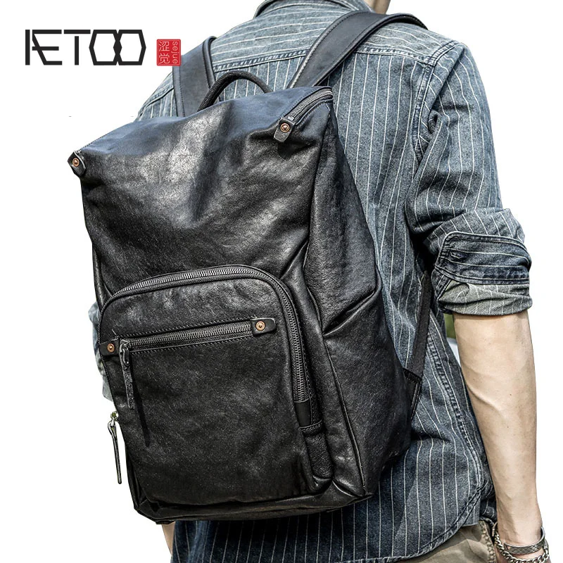 HIGH QUALITY AETOO Bi-shoulder bag men's top layer leather backpack men's fashion travel bag