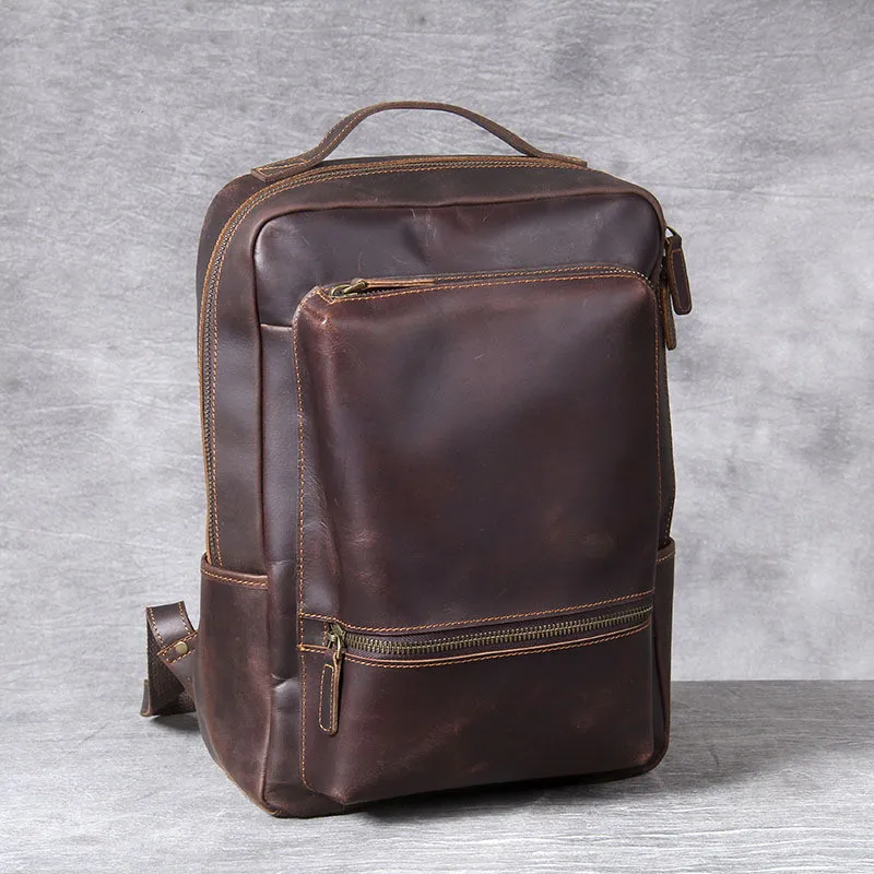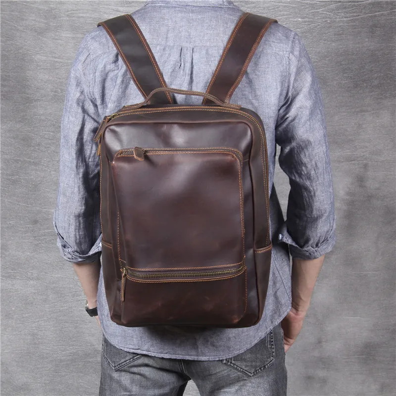 PNDME high quality crazy horse cowhide men's casual backpack simple cintage genuine leather travel