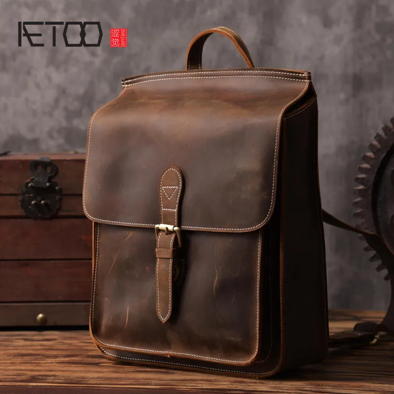 AETOO Retro art first layer cowhide shoulder cowboy man backpack school wind casual leather ladies